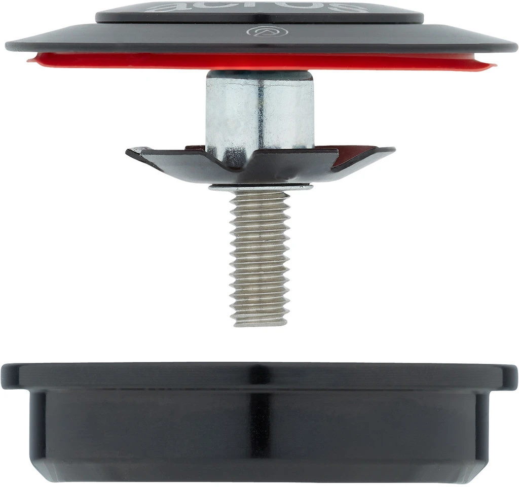 Das ZS44/28,6 Steuersatz Oberteil von Acros mit semi-integrierter Bauart für 1 1/8″ Steuerrohre und gerade Standard- oder Tapered-Gabelschäfte ist ein Rundum-sorglos-Produkt: Es überzeugt mit doppelt gedichteten Schrägkugellagern aus Edelstahl, optimiertem Steuersatzfett und zusätzlichen Dichtungen.