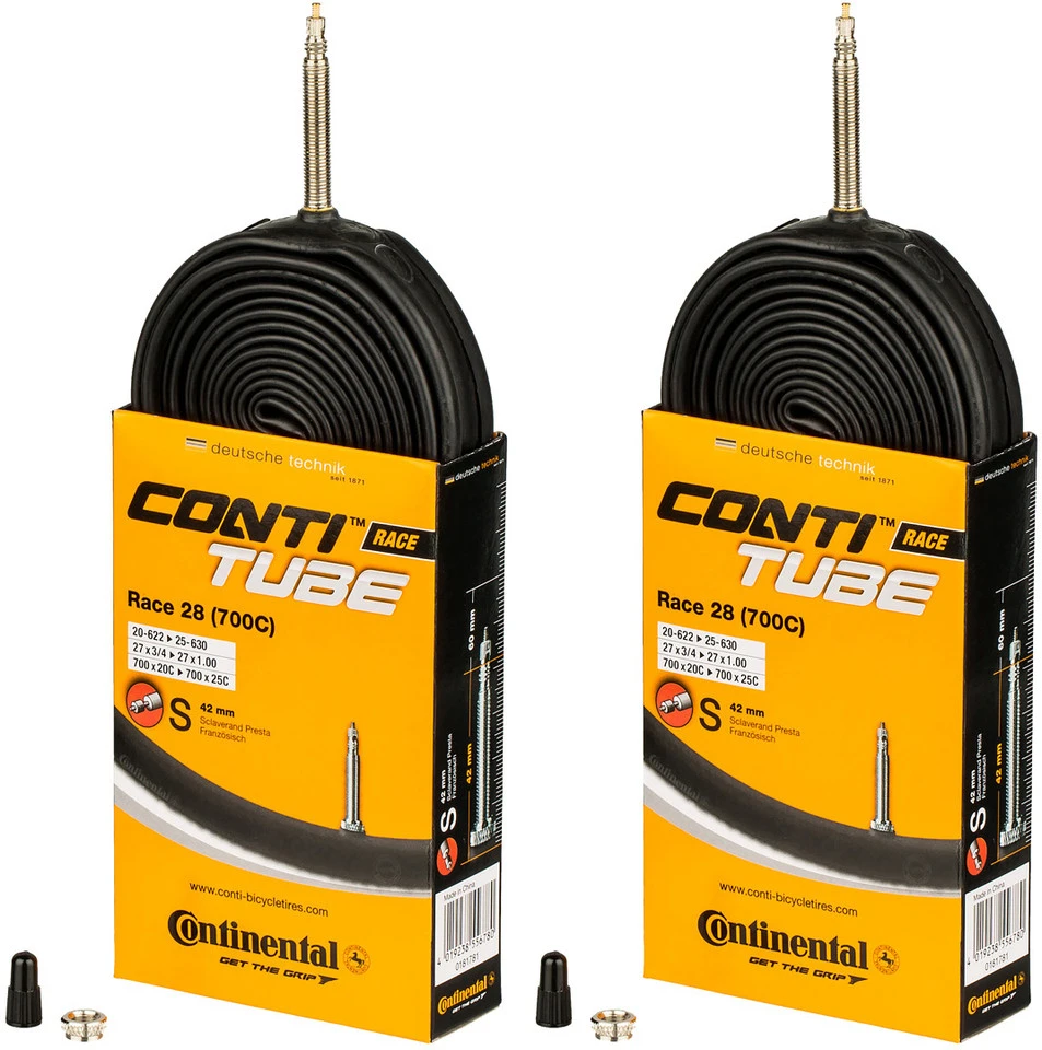 Bezeichnungen/Synonyme: Sclaverand-Ventil (SV), Französisches Ventil, Presta-VentilAußendurchmesser: 6,5 mmSonstiges: Bei allen Continental-Schläuchen mit SV-Ventil ist das Ventil abschraubbar (Ventilverlängerung, Befüllen mit Antiplatt-Mitteln etc.).Lieferumfang:2 x Schlauch Continental Race 28