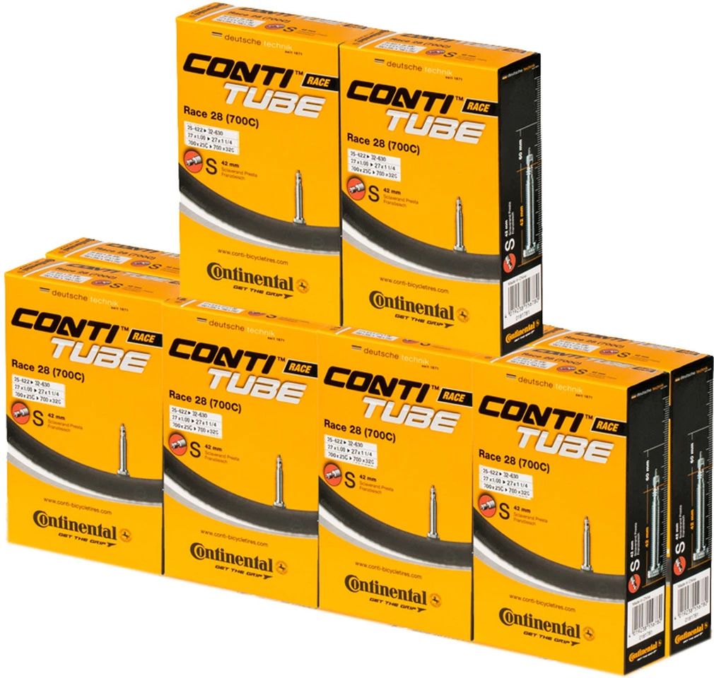 Bezeichnungen/Synonyme: Sclaverand-Ventil (SV), Französisches Ventil, Presta-VentilAußendurchmesser: 6,5 mmSonstiges: Bei allen Continental-Schläuchen mit SV-Ventil ist das Ventil abschraubbar (Ventilverlängerung, Befüllen mit Antiplatt-Mitteln etc.).Lieferumfang:10 x Schlauch Continental Race 28 Wide