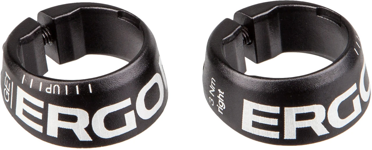 Kompatibilität:GE1 (ab 2014) Ergon LenkergriffeGE1 slim (ab 2015) slim Ergon LenkergriffeFarbindex:schwarz: mit weißen Ergon SchriftzugLieferumfang:1 Paar Klemmringe Ergon GE1/GE1 Slim