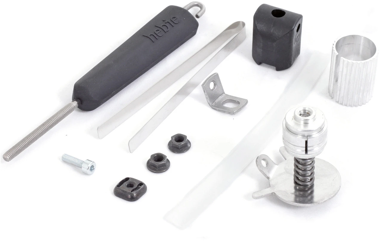 1 x Elastomerkörper1 x Haltewinkel Niro1 x Konusklemme für Gabelschaftrohr1 x Befestigungsplatte für Feder1 x Rahmenschelle Niro1 x Kunststoffblock1 x Gummiunterlage1 x Schraube2 x Mutter