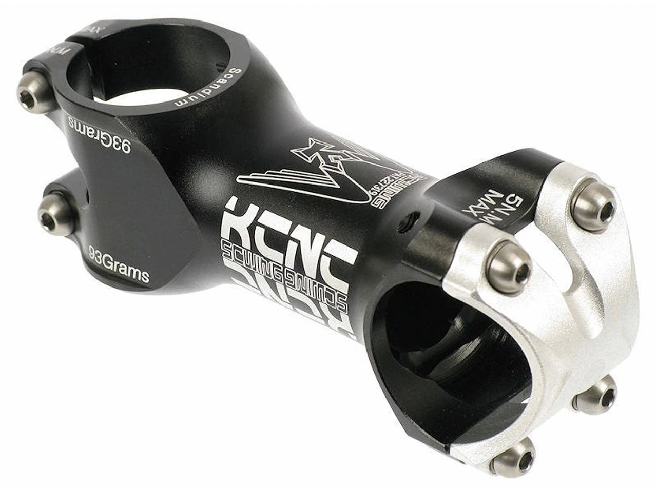 Der SC Wing Vorbau von KCNC besteht aus leichtem Scandium 7451 und ist trotzdem sehr robust. Er besitzt eine Steigung von 5° und ist in mehreren Längen erhältlich. Er eignet sich sowohl zur Verwendung bei MTB als auch bei Rennrädern mit einer Lenkerklemmung von 31,8 mm.